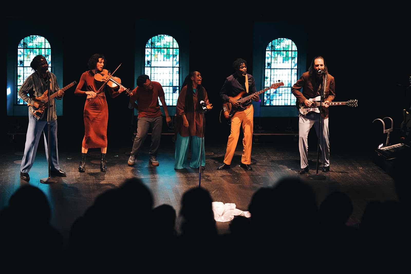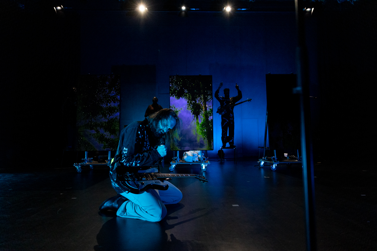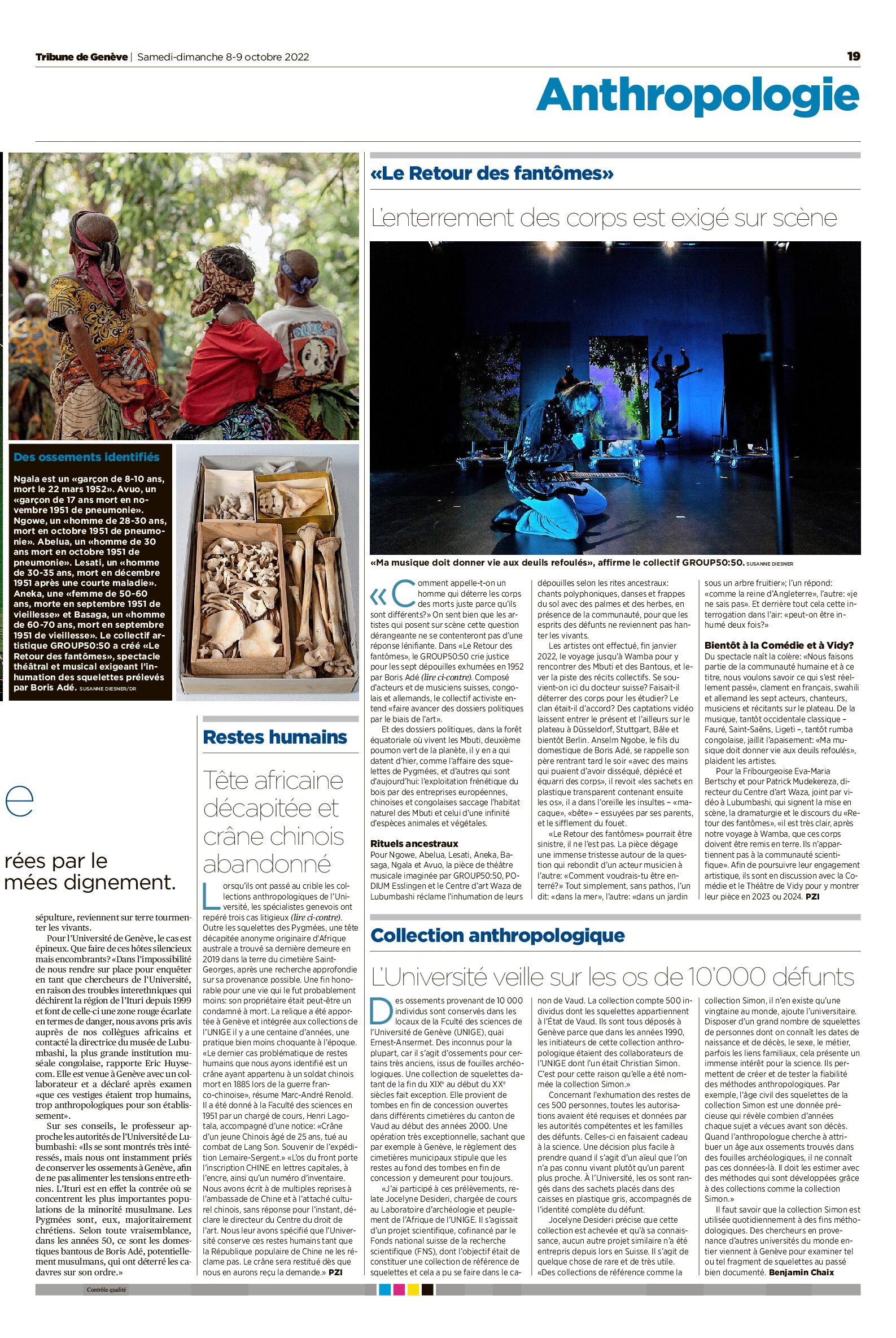 In „The Ghosts are Returning” erzählt die GROUP50:50, ein Kollektiv von Künstler*innen aus dem Kongo, der Schweiz und Deutschland die Geschichte von sieben „Pygmäen-Skeletten“, die ein Schweizer Arzt in den 50er Jahren aus dem im Kongo nach Genf brachte. Sie reisen in den äquatorialen Wald zum nomadischen Volk der Mbuti, das vom illegalen Holzeinschlag bedroht ist und aus den Wäldern vertrieben wird. Mit ihnen singend und tanzend entwickeln sie ein Ritual, mit dem die sieben Geister zu Ruhe kommen können. Es entsteht ein multimediales Musiktheaterstück über (neo-)koloniale Verbrechen, über den Tod und das Trauern.
